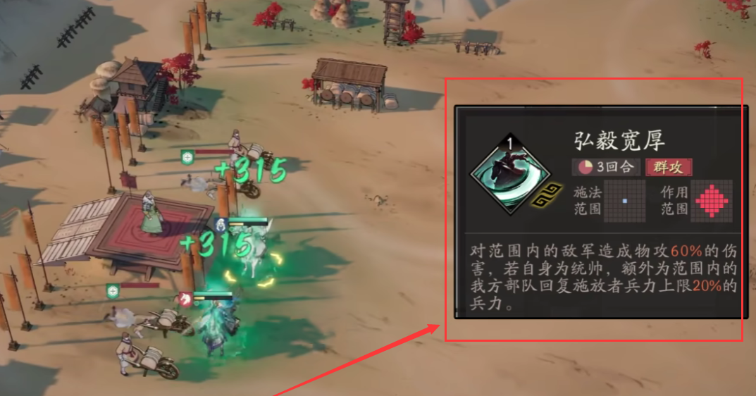 并且荀彧的技能效果还有一个“扶危”的能力,他可以治疗单体友军单位,恢复基于自身法术攻击108%的兵力,并且持续性的为单体目标赋予治疗效果提升15%的buff,在下一次恢复时,甚至可以直接拉满友军血量。