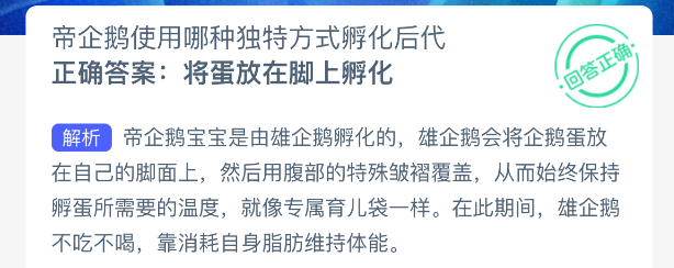 以上就是帝企鹅使用哪种独特方式孵化后代?神奇海洋今天答案最新2025年11月9日分享,更多相关攻略内容,请点击关注更新!