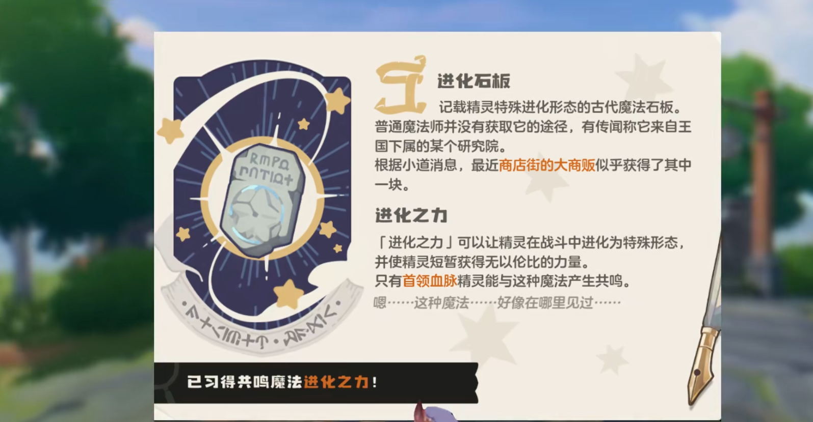 玩家想要获取进化之力,需要通过学习。具体的做法是,先要完成远古魔法录摘录的任务,通过完成了这个任务之后,其实玩家将会获得进化石板,一旦拥有了进化石板之后,玩家通过学习就能够掌握进化之力,其实这个是一种比较合理的方法,目前来说是最简单的,另外玩家也能够参与部分活动。毕竟在洛克王国手游当中会有限时活动,玩家只有完成了活动之后将会赠送进化之力的道具。