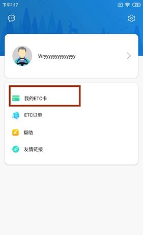 1、首先我们打开软件,然后来到【我的】功能分区,在这里点击我的ETC卡。