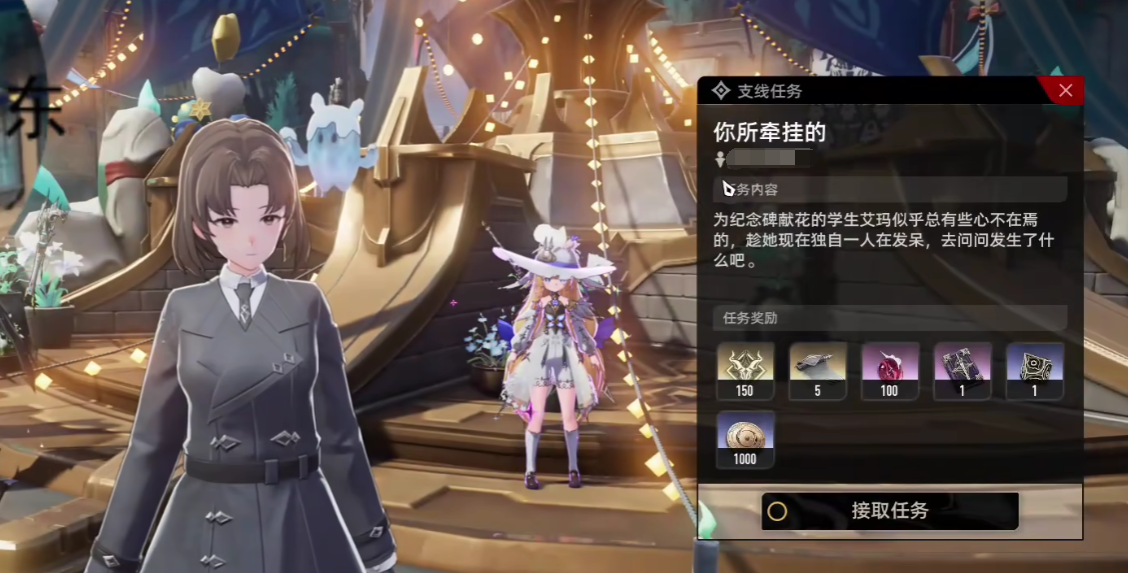 在前往任务地点之前,玩家需要保证自己的道德数值,已经达到六十点以上,在这之后,玩家直接通过传送点抵达“水仙平原”,即可在广场处寻找到一名老师NPC,她身着灰色服装,玩家和她对话之后,可以直接接取支线任务“你所牵挂的”。