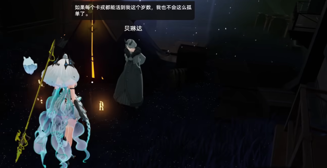 值得一提的是,在铁丝任务之前,玩家需要率先和一名为“贝琳达”的NPC对话,该NPC位于矿洞周围,作为卡戎之民的一员,他对于生或死的认知是与众不同的,在和其对话的过程当中,玩家会进行一次选项的判定,这里建议玩家直接选择“贝琳达似乎意有所指”即可。