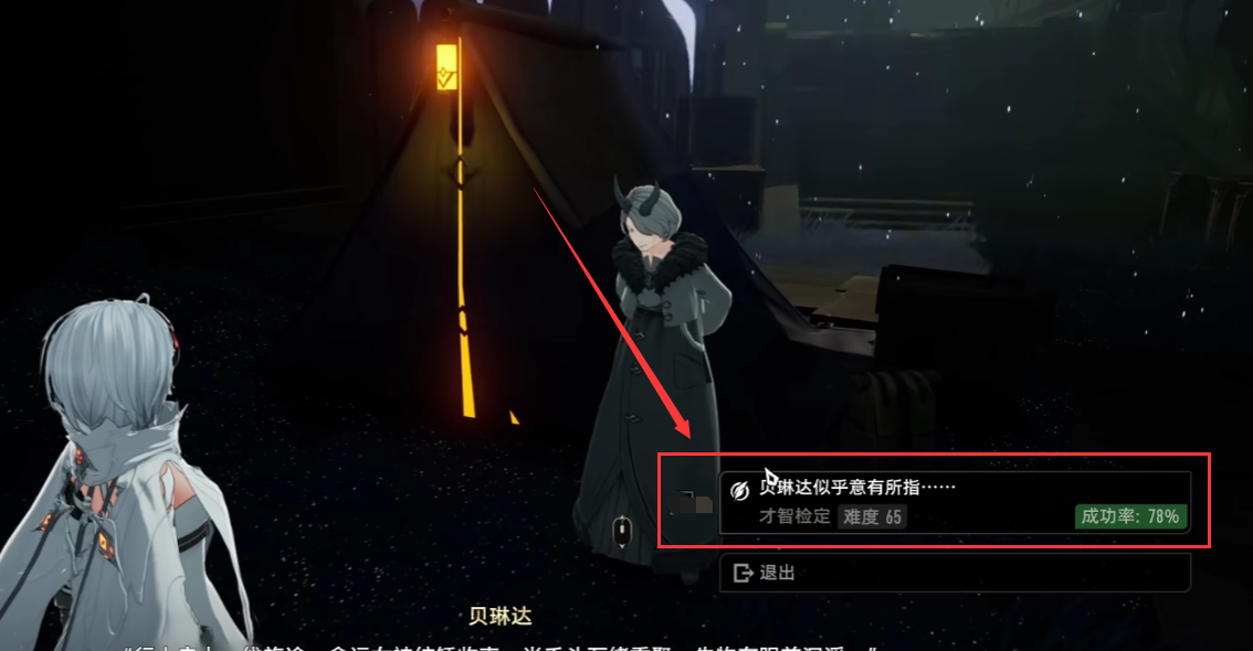 “贝琳达似乎意有所指”的技能鉴定难度是65,玩家只需要让自己的道德水准达到六十点以上,即可获得百分之七十以上的成功率,成功鉴定后,玩家即可说服贝琳达,保证后续任务的进展顺利。