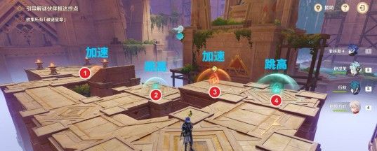 机关破谜范式的机制核心在于“增益效果”的拾取与放置。旅行者可以按战技键拾取对应的增益效果,再次按战技键将其放置在指定的蓝色圆圈内。