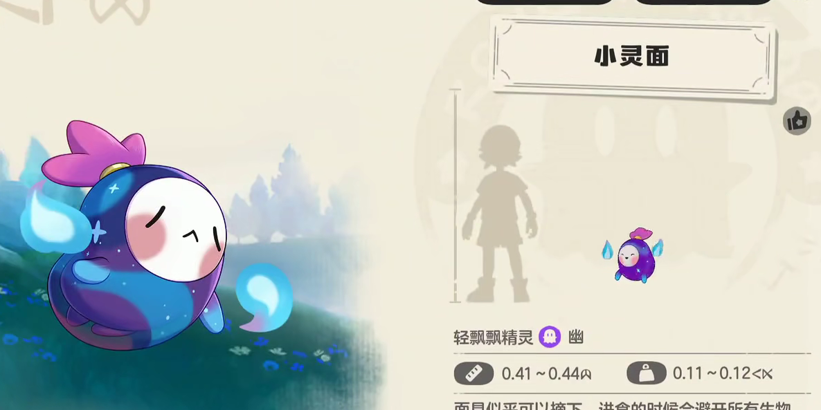 小灵面在游戏当中是一个幽灵属性的精灵宠物,定位是“轻飘飘精灵”,由于性格设定较为社恐,玩家在大世界内和小灵面互动时,小灵面时常会露出一些较为可爱的表情。