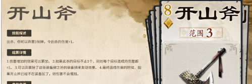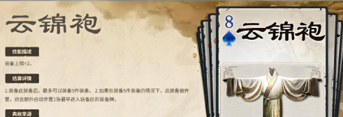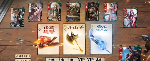 云锦袍作为典型的防御向装备,具备提升装备栏上限+2的被动效果。当玩家装备区已满五件时,若继续装备云锦袍,则会自动移除最早置入的一张装备牌,体现出“以退为进”的战略思维。该装备支持与其他类型装备共存,可构建包含物理防御、火伤减免及闪避能力的多重防护体系。同时兼容多种搭配方案,适用于主将位角色或需要长期作战的阵容配置。另一款代表性装备——开山斧,则侧重于攻击输出。其基础属性增强了攻击范围与暴击伤害,专属技能“地裂”允许使用者在打出【杀】时弃置一张手牌,使此次【杀】的伤害+1,且此增益可叠加。凭借高额爆发与群体压制能力,开山斧能够在关键时刻实现清场效果,是强攻流派的重要选择。