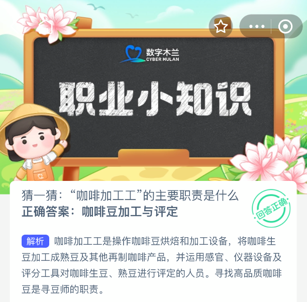 以上就是猜一猜:“咖啡加工工”的主要职责是什么?支付宝蚂蚁新村最新答案2025年11月11日,更多精彩内容,请点击关注更新!