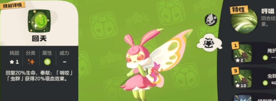 草衣虫拥有一个名为“哼唱”的专属特性,每回合结束时有一定概率触发“奉献”效果,这一机制能有效提升其续航能力和战场持久度。由于草衣虫本身具备较高的生命值,适合担任团队中的前排担当,能够吸收大量伤害,保护后排输出。虽然它的攻击速度偏低,但配合控制类技能,可以在关键时刻干扰对手节奏。因此,草衣虫在阵容中扮演着攻守兼备的角色,既能抗压又能反制,是多种战术体系中不可或缺的一员。