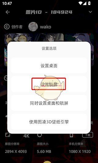 3、选择【设置锁屏】即可设置锁屏壁纸。