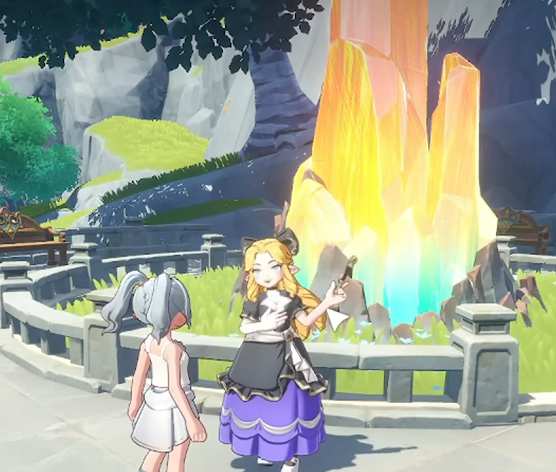 想要参与精灵寻宝任务,首先需要前往地图中的采邑地。该区域中心位置设有一块醒目的彩色巨矿,十分容易辨认。在矿石附近,会有一位金色头发的女性NPC驻守。与其对话即可开启“精灵寻宝”活动流程,任务入口清晰明了,操作简单便捷。