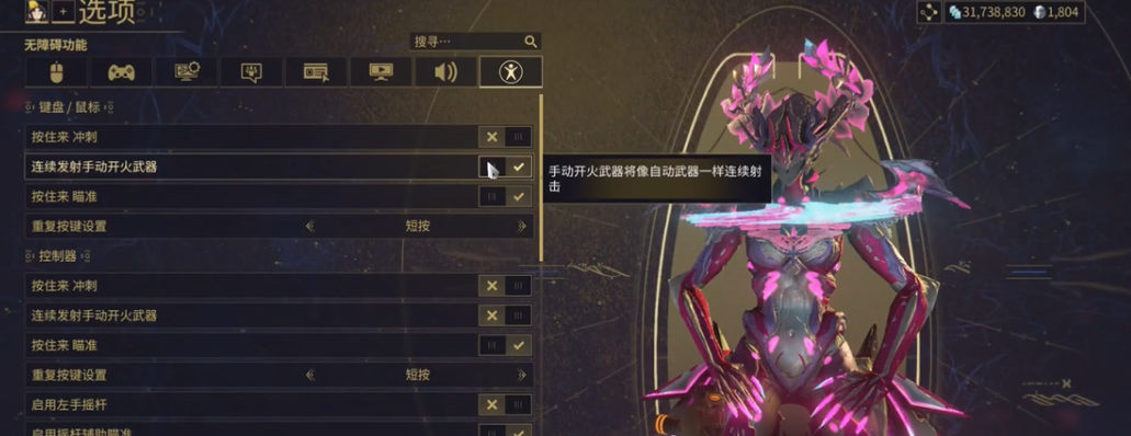 在说完全自动瞄准的关闭方法以后,小编在来给大家说一说半自动模式和全手动模式,半自动模式一种一半手动一般自动的模式,这个模式是很多既想要获得良好的战斗控制感受,又想要把操作兼顾上玩家的首先。玩家在这种控制模式中,武器虽然依旧会自动的瞄准范围内的敌人,可是玩家却需要手动的控制射击的频率以及射击的时机,让重复性操作产生的疲劳感在降低的同时,自身的还能够感受到不错的战斗参与感,玩家若想要获得更好的半自动体验感,建议可以给自己的武器配置进行一下调整,比如说武器的射击速度以及精准度等等。
