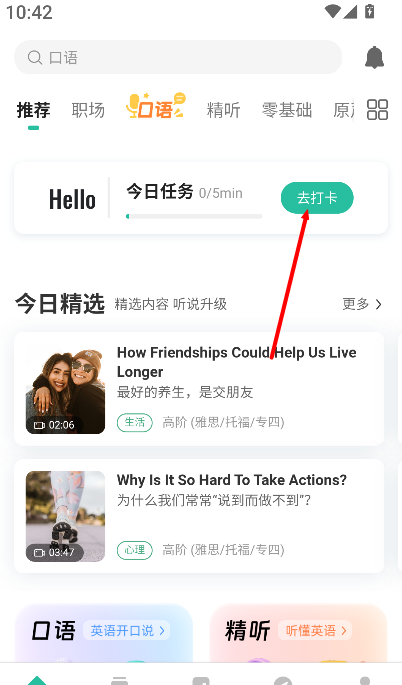 扇贝听力口语app怎么添加学习计划,开启软件后,第一步按照提示创建个人学习档案,填写基础信息以及学习目标,这样系统就能规划出适宜的学习内容,档案建立完成后可进入首页进行每日任务打卡,查看当天学习进度与任务完成情况,保持持续学习节奏。