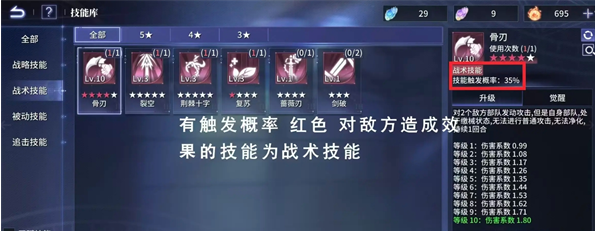 战术技能:判定是否发动成功,成功后发动,多为直接的输出技能