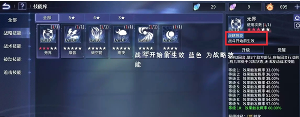 2、相同种类的技能所造成的相同技能效果无法叠加,例如2个战略技能的造成伤害增加效果,只取最大值生效