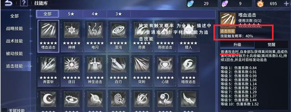 技能生效顺序:被动技能->战略技能>战术技能->普通攻击->追击技能