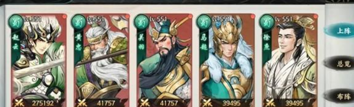 之后利用张飞的技能,来高额进行输出,释放物理伤害。接着刘备的仁德这个技能可以提供相应的加成效果,来持续性进行治疗,包括诸葛亮的八阵图,也可以来范围性的控制敌人的后排角色,玩家们可以选择将赵云替换成关羽,组成五虎上将的阵容来提高全队的暴击率。