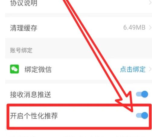 第二步:进入设置,点击关闭‘开启个性化推荐’