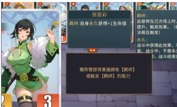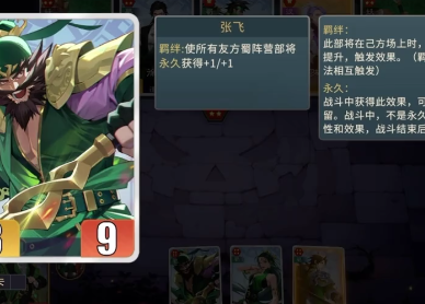 今天就用蜀国阵容举例说明,比较直观的,那就是卡牌颜色的变化,主要是以黑色还有绿色为主。核心的玩法是围绕羁绊,搭配后勤效果之后,马上就会形成一个完整的体系。所谓的羁绊就是要把足够数量的蜀国将牌凑齐,就可以激发特殊技能,获得额外的属性加成。让整个队伍的战斗力也能有效迅速的实现飞跃。在选择卡牌时构建蜀国阵容是关键,开局时尽可能挑选蜀国将牌,不要去追求高星级的卡牌。先将凑齐基础羁绊作为核心,一开始可以使用2~3个蜀国低星级的将领。