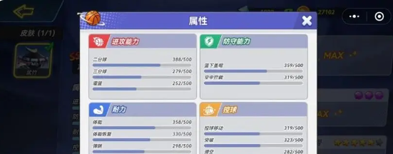 可以先看一下数值面板进攻能力里面两分球的数值就直接拉到388,所以就会超过许多的角色。耐力属性以及防守属性也会处于中等偏上的水平,速度表还有控球的表现都是比较均衡的,是一个攻强守稳的全能性配置。这样的面板,再搭配核心的天赋,仙风道骨之后,就可以直接奠定王者的地位。天赋技能迷踪后仰就仿佛是给两分球所打造。只要是在两分区域内触发,就会直接带有一个小幅度的后侧闪身。不仅可以轻松的躲开防守球员的封盖,还能迅速的提升命中的效率。