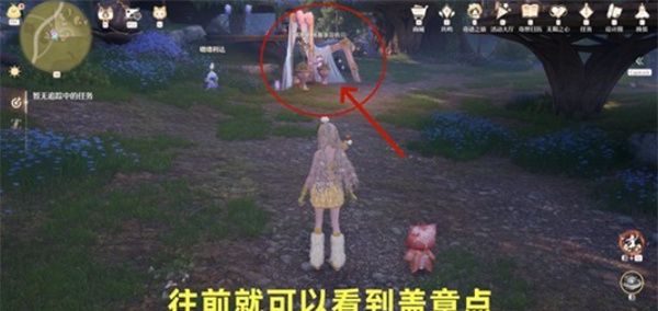 传送至【心愿研究所】锚点后,沿路径直行即可到达盖章点所在位置。