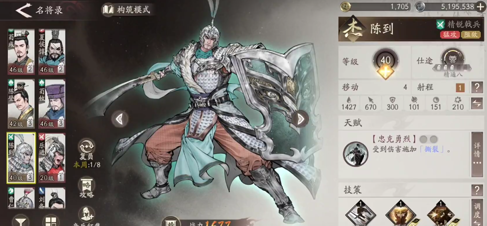 但是单挑里面,因为武将的能力只跟红度有关,所以红度比较高的情况下,这里陈到的面板数值就会非常高,而且后期还会开第二个槽位,所以等级上面大家不用担心,就算是初级的效果,他单挑的面板也不会下降,不用给资源的话,红度高的武将在这里单挑的强度越高一些,但是还是要看一下哪些招式比较好用,比如说关羽想单挑的话,可能大招一次性就没了,所以在这里,如果用陈到的话,就算是残局的话,他的各种大招搭配小招是也是可以应付很多单挑的。