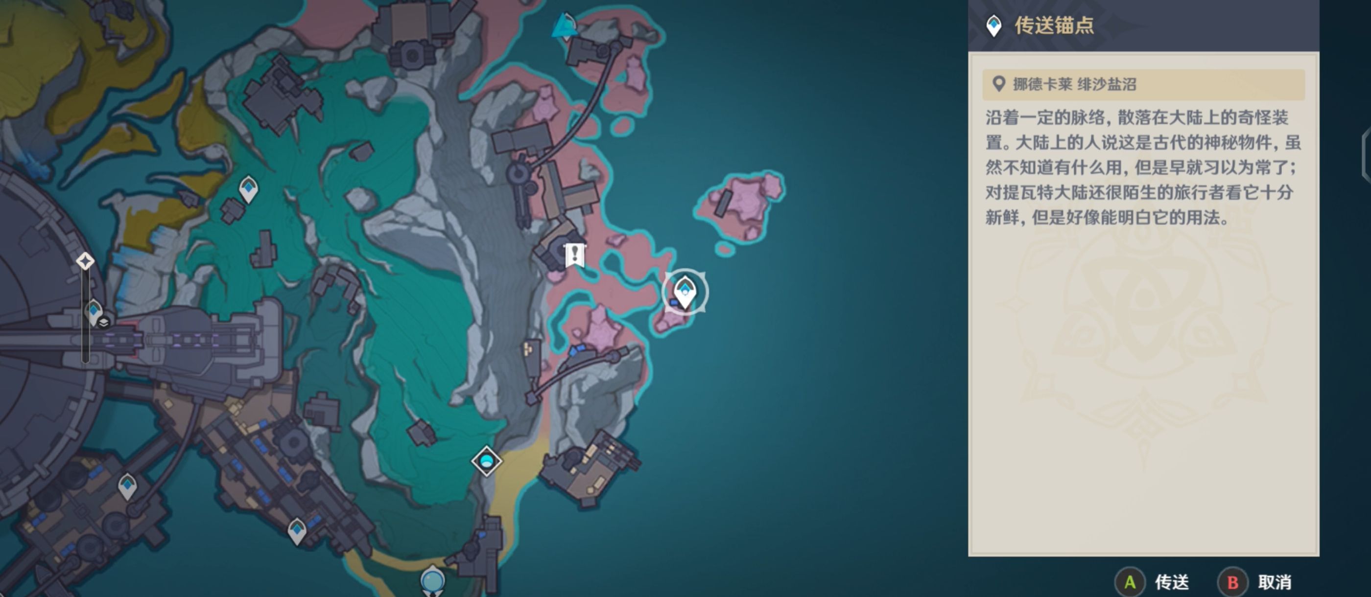 来到[挪德卡莱-月矩力试验设计局]右边的[绯沙盐沼];
