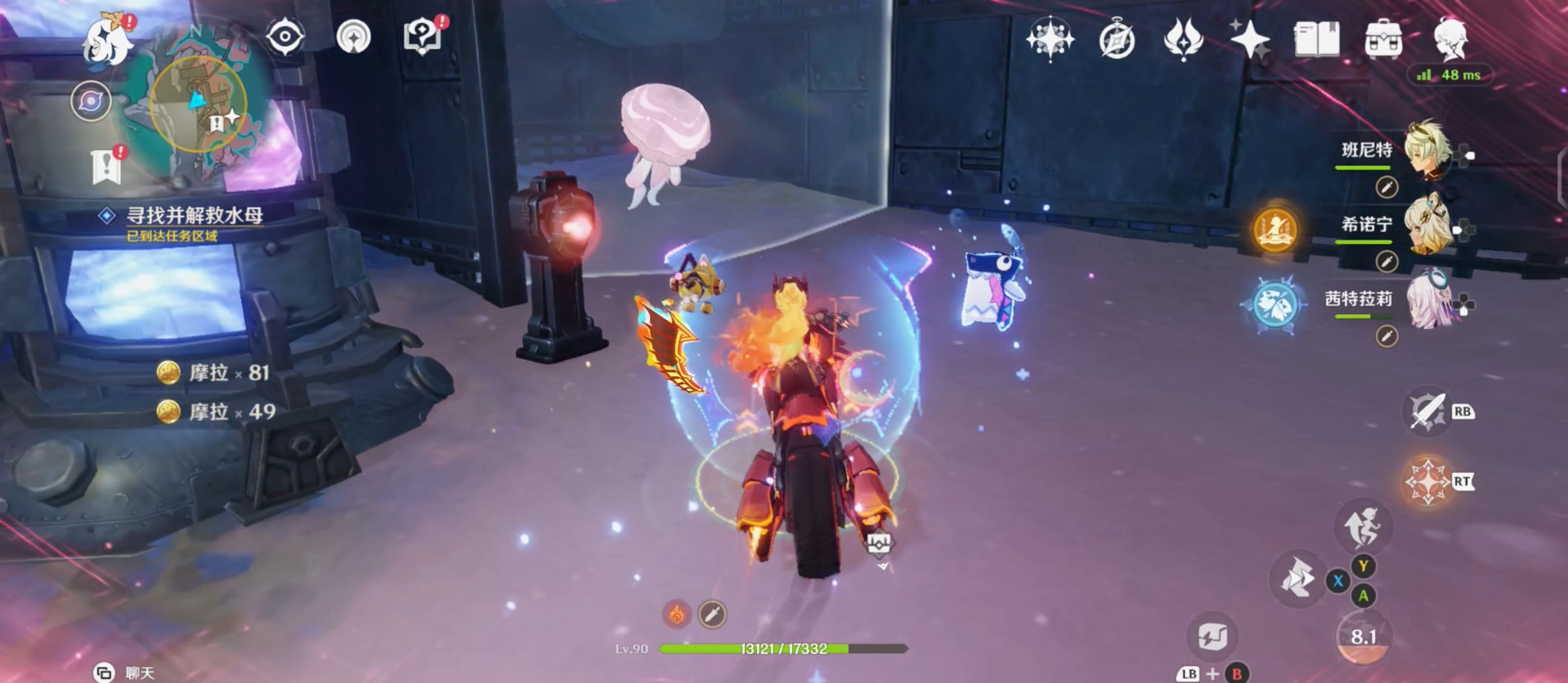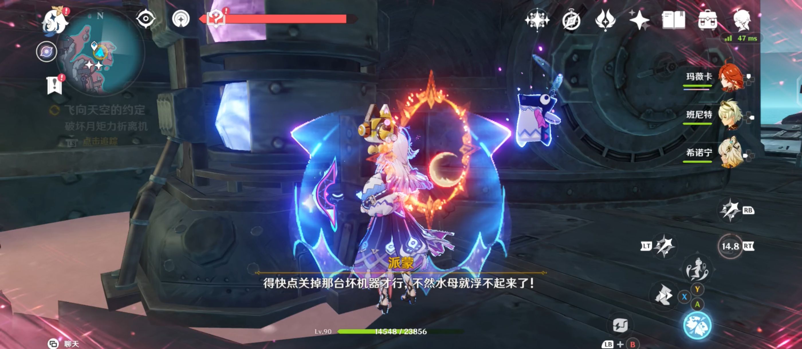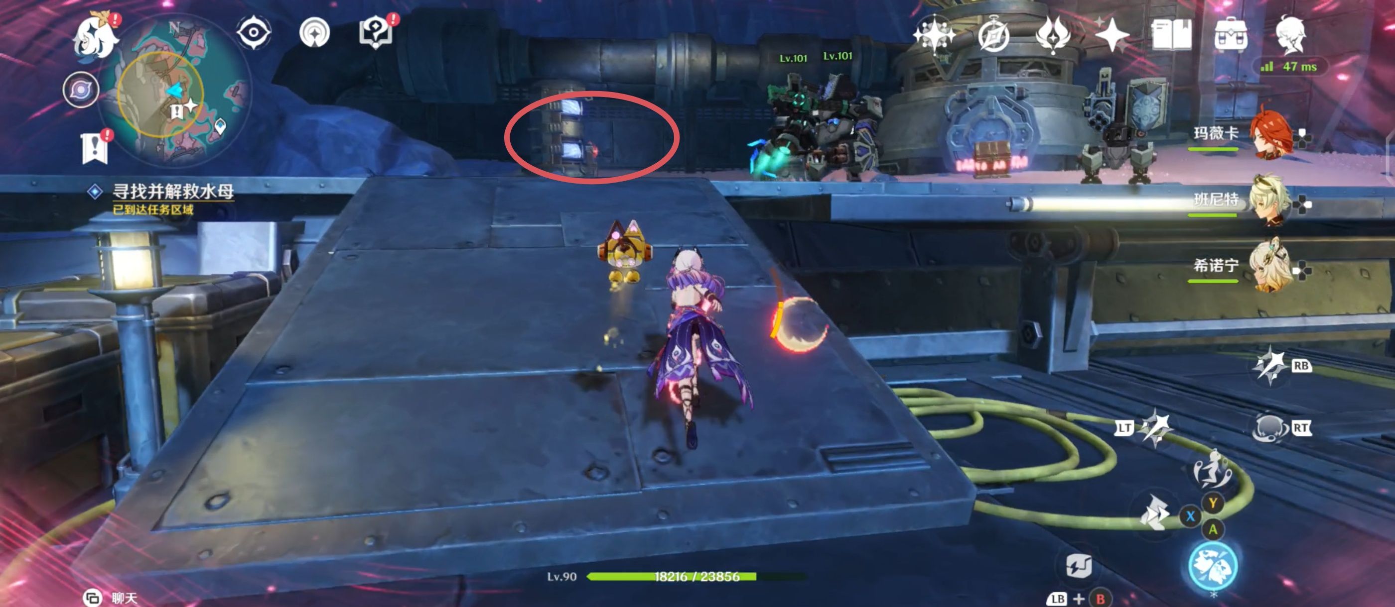 将水母解救后,利用不远处的月矩力来到空中,将机关破坏后进入对话;
