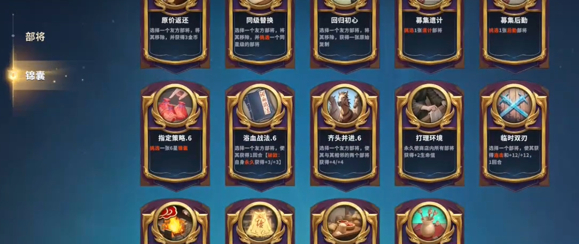 千机阵锦囊牌怎么玩?作为这款游戏的核心组成部分,需要玩家灵活对自己所拥有的卡牌角色进行搭配。实现在属性上的互补和属性上的增长,为整个队伍在作战时提供更加强大的助力。各种资源在利用时,对卡牌角色的成长也起着至关重要的作用,而锦囊牌就是阵容在组建时候的关键资源,可以使人物的属性进行叠加,附带更多的加成效果。