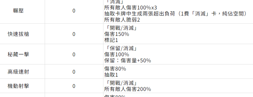 攻击类型中立卡在战斗中是核心的输出手段。零费的快速拔枪就成为开局的利器,在开战阶段就可以打出150%的伤害,配合后续的连招,那效果自然就可以翻倍。机动射击就作为稀有卡,可以针对所有的敌人形成200%的群体伤害,清场的效率还是比较高的。颅骨重击的弱点攻击就可以加成50%针对高防御敌人时就会拥有显著的效果。稀有卡神圣一击不仅会有200%的伤害,而且还可以附加两点韧性伤害,可以轻松的突破敌方的防御buff。