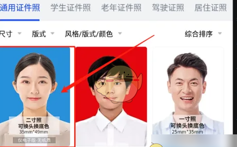 2、在“通用证件照”类别中点击二寸照片模板。