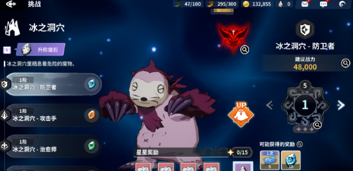 副本里面有不同的分支,根据角色的职业来选择副本的路径,不同的职业需要挑战不同的副本分支。举个例子,防卫者职业要去挑战“冰之洞穴·防卫者”这个分支,战力推荐是48000左右,其他职业也是类似。其实这些副本的设计挺巧妙的,挑战难度适中,但如果你战力低的话,还是要小心点。副本可以重复挑战,只要你有足够的时间和耐心,反复刷是可以拿到想要的东西的。