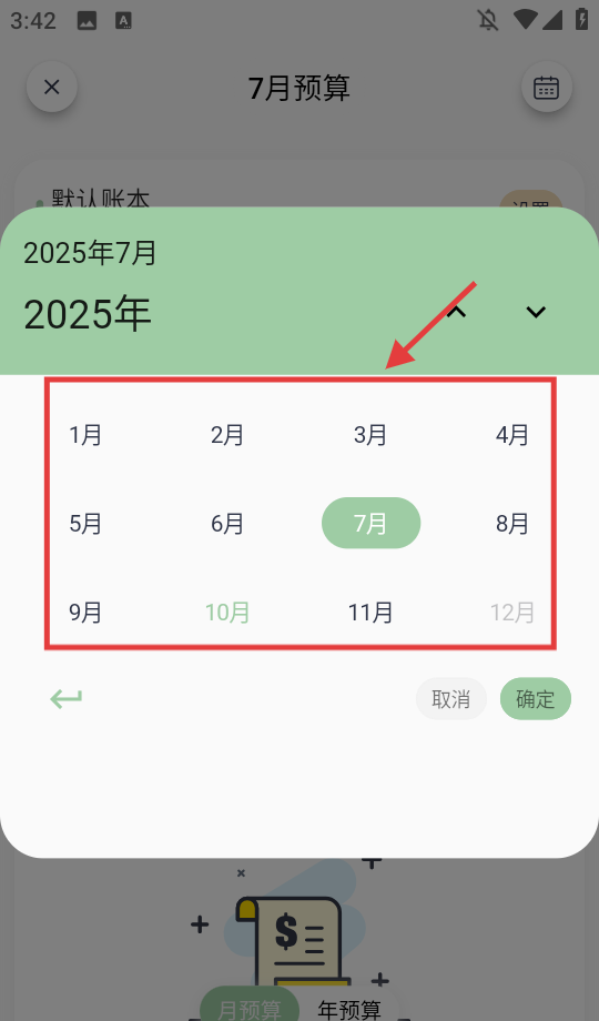 2、在预算页面点击右上角日历图标。
