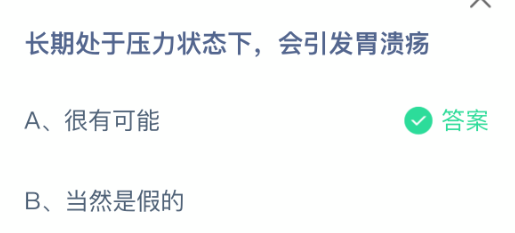 以上就是长期处于压力状态下,会引发胃溃疡,支付宝蚂蚁庄园2025年11月16日答案最新,更多精彩内容,请点击关注更新!
