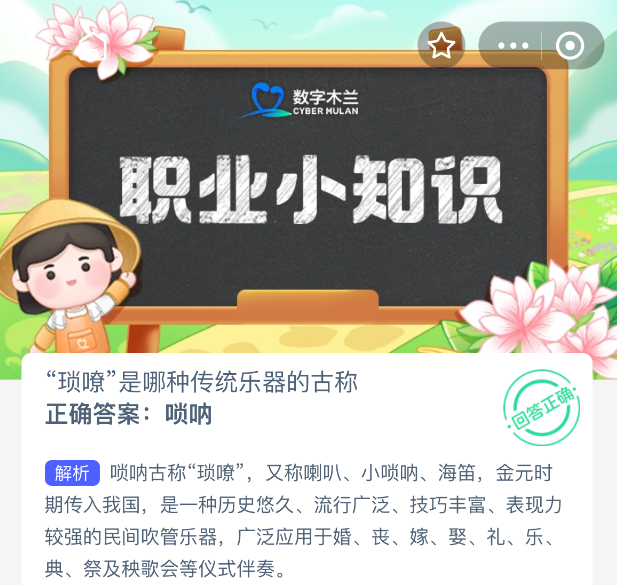 以上就是“琐嘹”是哪种传统乐器的古称?支付宝蚂蚁新村最新答案2025年11月16日,更多精彩内容,请点击关注更新!