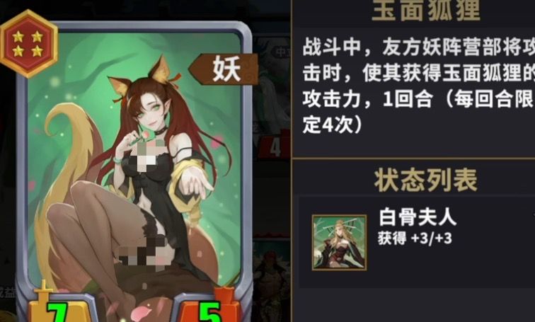 如果对方的阵营中出现了比我防血量还要强大的敌人,且他的攻击力也很大时,就可以让玉面狐狸出场,他能够消灭大身材单位的敌人,通过叠加的方式对敌人产生更强的伤害,虽然他的毒杀技能非常强大,但是对于王翦这样的圣盾卡牌还是有一定制约因素的,是不能够直接进行毒杀的。