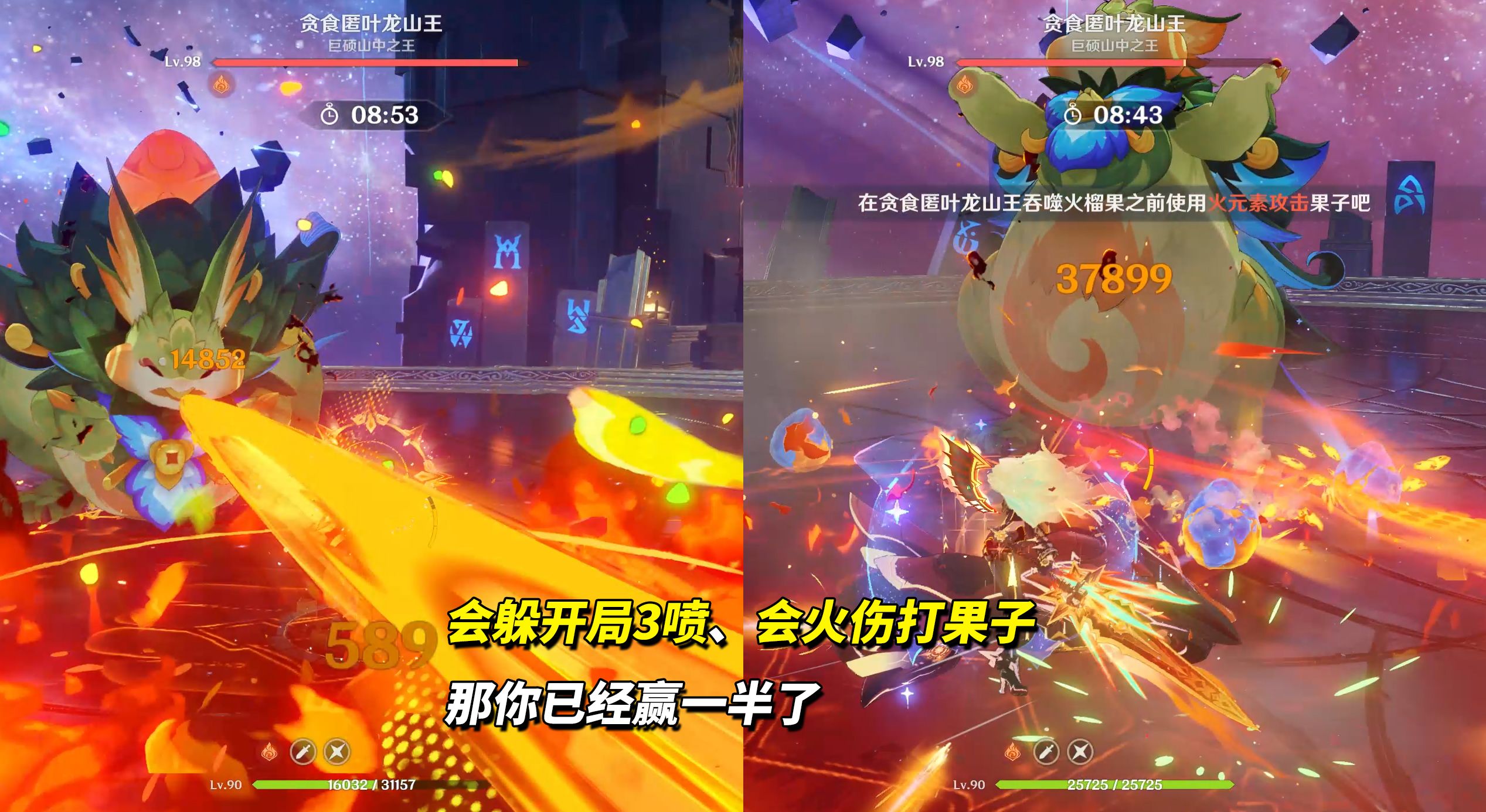 12-2下半,贪食匿叶龙山王(521万血)。只需记住避开开场3连喷高伤害,以及及时火伤点燃地上的火榴果,其他则是匿叶龙的强化版技能,没啥特别之处。