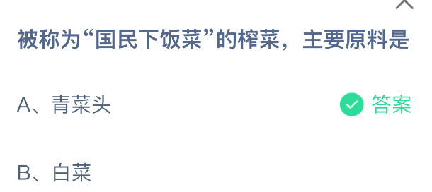 以上就是被称为“国民下饭菜”的榨菜主要原料是,支付宝蚂蚁庄园2025年11月19日答案最新,更多精彩内容,请点击关注更新!