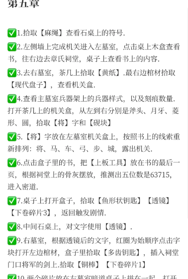 《缠重山2冥玉钞》第五章通关攻略来了:第五章需综合解谜开启结局。关键步骤包括:排列“将马车弓步城”打开机关盒;根据骨牌推算密码63715进入密道;组合透镜与拼图破解多处棺椁;最后用铜棒走完路线图,获取手摇杆并跟随NPC指引即可通关。