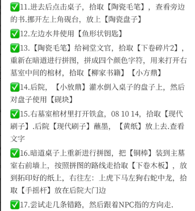 13.【陶瓷毛笔】给祠堂文官,拾取【下卷碎片2】,重新在暗道进行拼图,拼成四个颜色字符,用来打开右墓室中间的棺材,拾取【柳家书籍】【小方鼎】