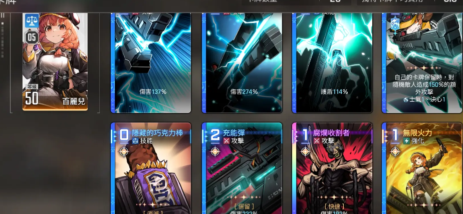 专属卡方面,加蓝色专属卡或者是橙色专属卡,分别是2400分到3000分。丢弃一张紫色专属卡就要3600分,删除一张白色专属卡,最低也要1800分。闪卡的分数差异性也是比较大的,例如蓝色专属卡神闪,2400分,橙色专属卡神闪3000分。中立卡又被称之为分数刺客,加一张蓝色中立卡,那就是2400分,在闪光之后的中立卡负荷也会直接翻倍。有玩家7万分数的存档,就是因为中立卡太多而被迫的丢弃。