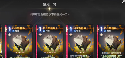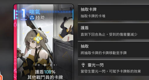 先来看一下通过灵光一闪获取的卡牌。喘气在一费就可以带来100%的护盾,还可以抽取其他两个战斗员。不管是高速卡组,还是低速卡组,全部都是比较强的抽卡,可以精准的抽到一些关键牌。灵光一闪衍生形态里面比较常用的那就是衍生一,衍生二会比较注重于自身的输出。衍生三则属于零费的上盾,但是稳定性相对是比较差的。最后那自然就是准备发射的搭档卡准备轰炸。可以有效增加上膛的上限,在高速卡组中就能进一步的提升输出。很多人都会把这个角色和百丽儿放在一起对比,其实这个角色擅长的就是补伤害,并且并不会占据资源,所以很适合。