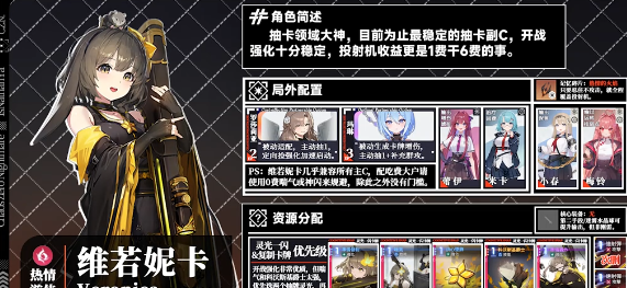 游戏中的热情游侠就是维若妮卡,会拥有比较出色的泛用性,而且稳定性也比较出色。在游戏中是一个稳定可以过牌的辅助,自身还可以补充很多的伤害。在特定卡组的搭配下,甚至可以直接成为队伍中的输出角色,整体来看会拥有较好的强度。可以先来看一下基础卡牌,费用的结构全部都是一费。要是可以触发高上膛效果,那补伤害的能力也是比较亮眼的,因此建议优先就需要把防御牌删掉,然后再考虑删掉攻击牌。