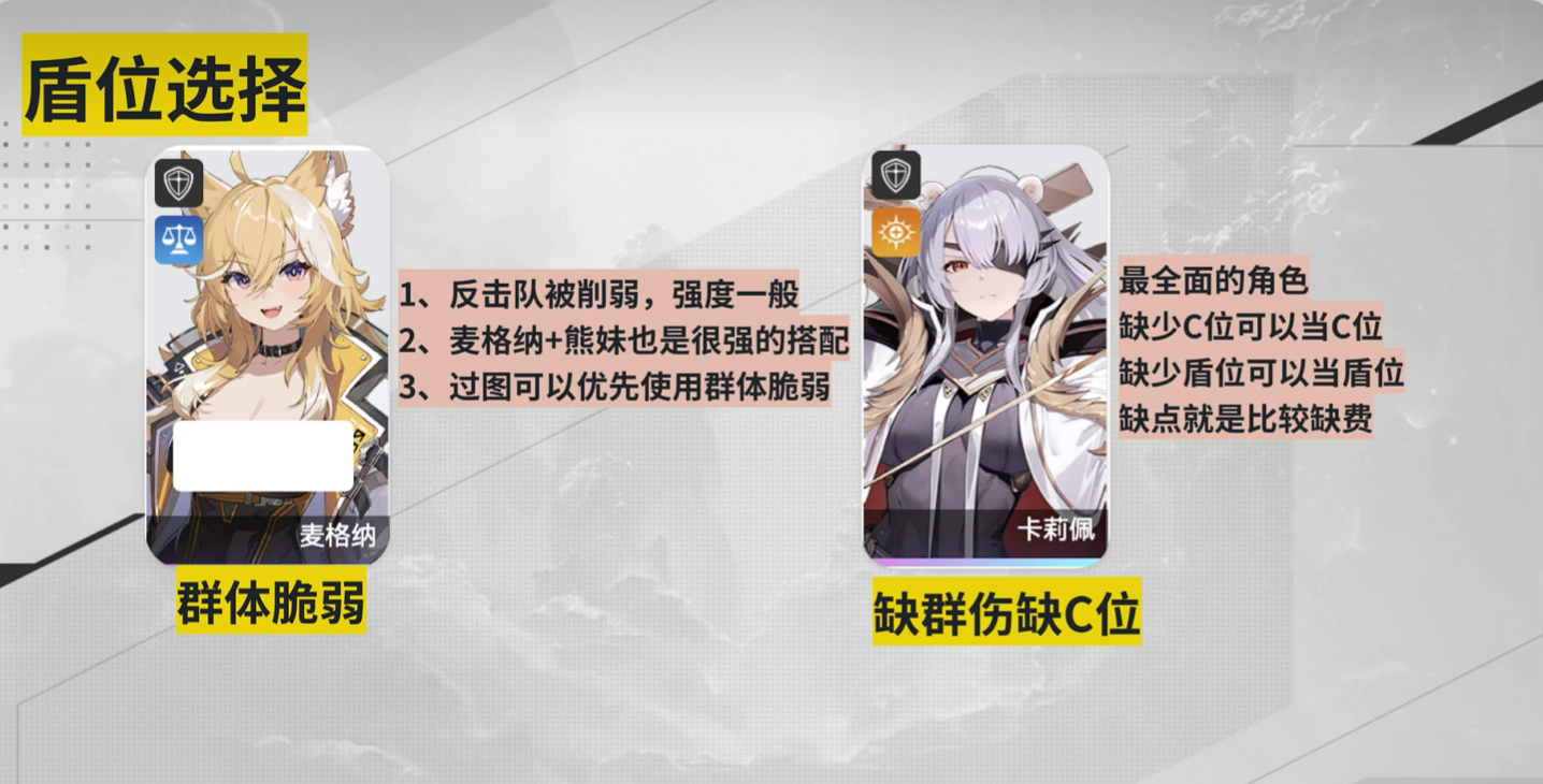 增伤类的角色也是整个阵容中不可缺少的一个内容,可以很大程度的去放大主c的输出表现,让它的技能伤害达到更大,这样对敌人的伤害也是能够加重的,推荐妮雅这个角色,它的增伤幅度在整个阵容中是名列前茅的,因此让它作为一个增伤类的角色在整场游戏中是非常有用的,无论是在面对群体敌人还是高防御单位,都能够在这个游戏中做出一个质的变化。