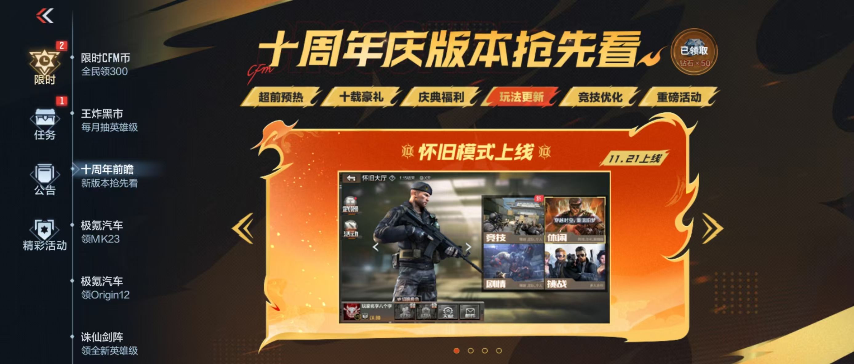 《穿越火线:枪战王者》怀旧模式上线时间介绍