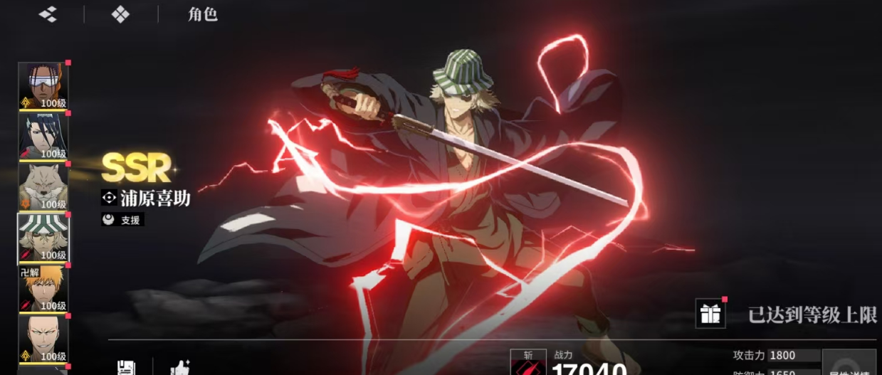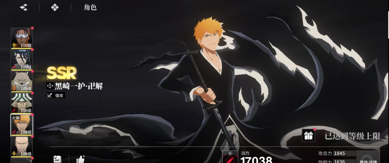 接着说一下强攻击位置,第1个选择的就是黑崎一护,这就是开服之后的第1个角色。爆发的伤害还是比较出色的,一旦在进入卍解状态后,普通攻击就会附带穿透剑气的效果,清场的效果还是比较快的。大招月牙天冲还是很厉害的,就可以穿透直线上的所有目标,而且放技能时还会有一个霸体效果,并不需要害怕被敌人打断。在打boss或者是清理小怪的时候,真的比较靠谱。