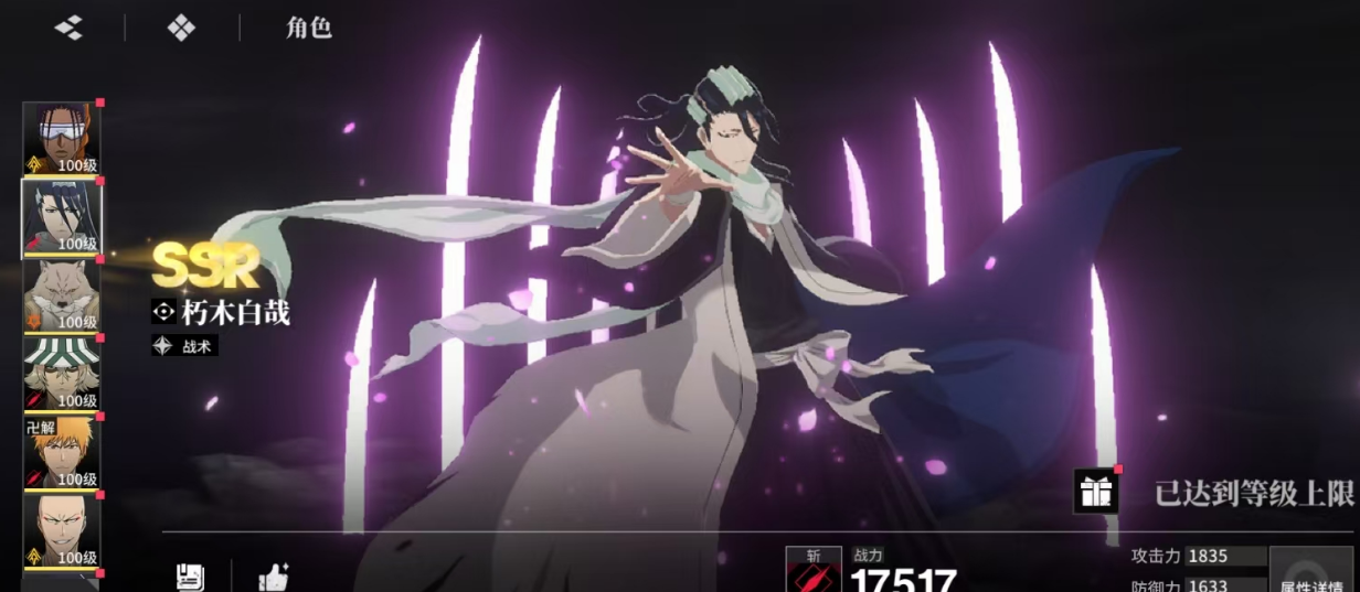 战斗位置上可以选择朽木白哉,他的战斗技能脱手之后就可以释放,放完技能之后也可以马上切换成其他的角色。战斗技能,还可以迅速的打出伤害,可以轻松的实现后台输出,更关键的是战场技能就可以有效降低敌人的抗性。