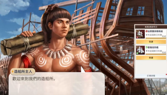 港口是所有活动的中心,里面的设施各有各的用处,造船厂能造船、改船还能修船,初期的时候,低等级船的材料和图纸都能在这里直接买到,不用跑去找,酒馆是招船员的地方,每两个小时会刷新一批可招募的人,想组建团队就得常来看看,王宫和商会可以用贡献度换东西,一些稀有的造船材料或者道具,只能在这里换到,工会则会发布各种针对性的任务,分战斗、贸易、冒险三类,做这些任务能提升对应的核心等级,对后期解锁内容很重要。