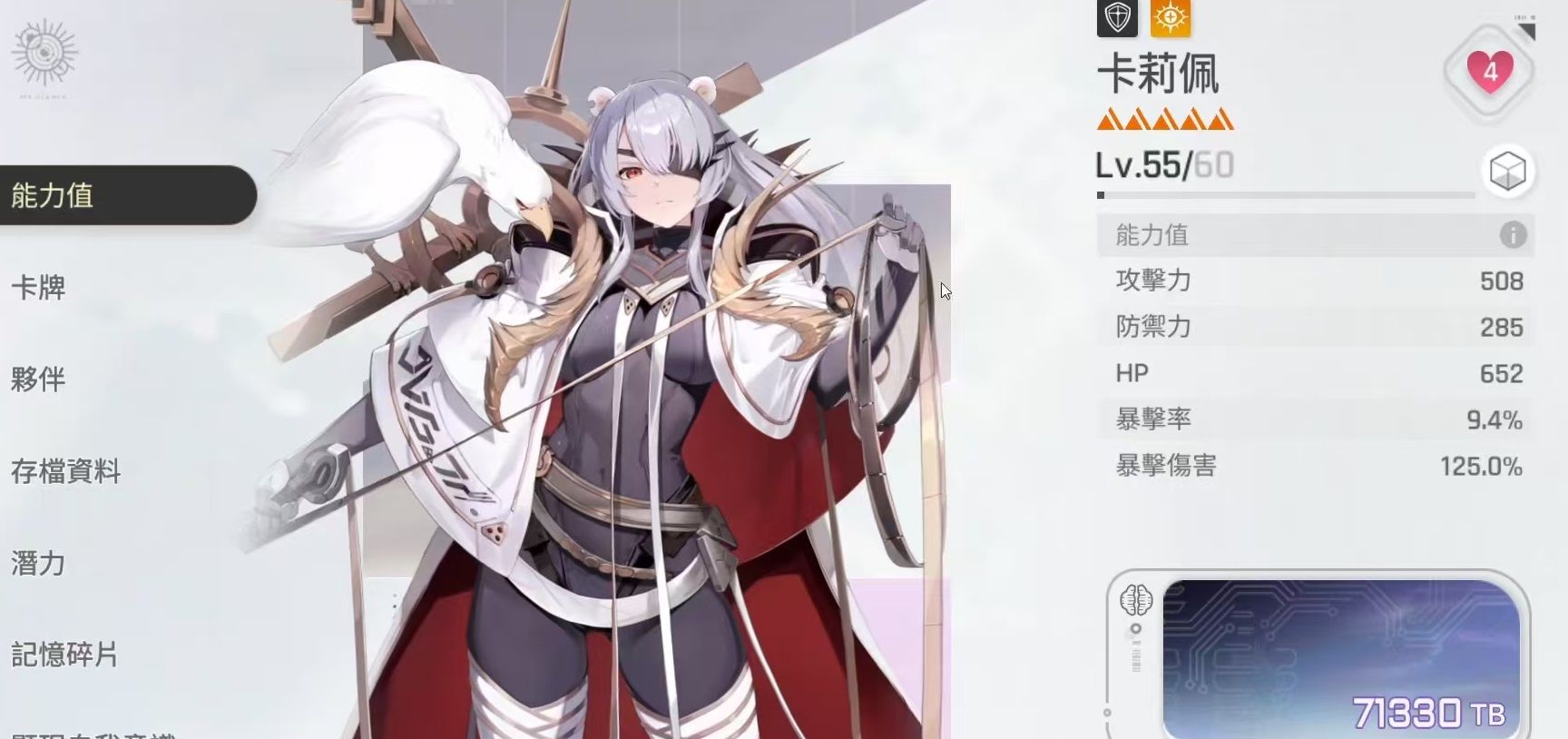 在独特卡牌方面,她的核心机制围绕“秃鹰发射”展开——该技能不仅能对全体敌人造成100%防御值的范围伤害,同时为自己附加80%防御量的护盾,并叠加一层“银色之幕”效果。当“银色之幕”累积至三层时,将触发一次全屏爆发,对所有敌方单位造成高达400%防御值的真实伤害,并清除层数,实现强力清场。