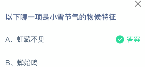 以上就是以下哪一项是小雪节气的物候特征,支付宝蚂蚁庄园2025年11月22日答案最新,更多精彩内容,请点击关注更新!