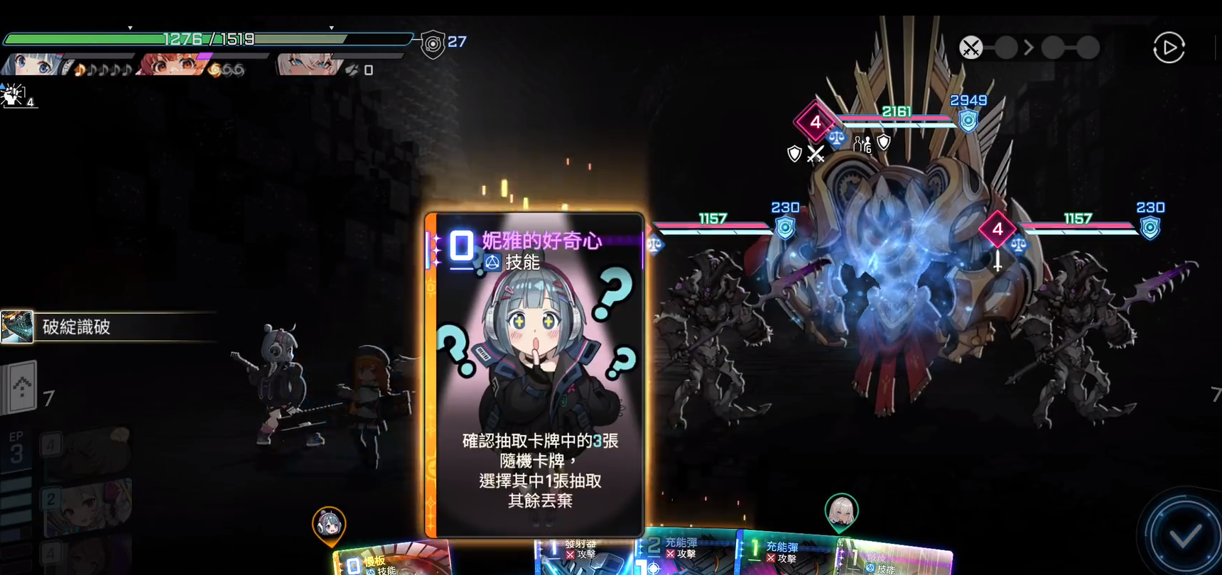 锁定攻击卡牌一共有三种选择,保留、封锁以及回收,玩家可以根据不同的英雄卡牌而选择不同的锁定卡牌的方式,这样能够更好的去面对每一场战斗,并且让每一场战斗都能够让自己成为主导。保留主要是指英雄卡牌在回合结束的时候不会直接的进入废弃牌,相当于锁定了这张英雄卡牌,从而不被丢弃,可以放在自己的背包中,后续还可以拿出来使用,这样,玩家就可以根据战斗的实际情况而不断的去切换英雄卡牌。